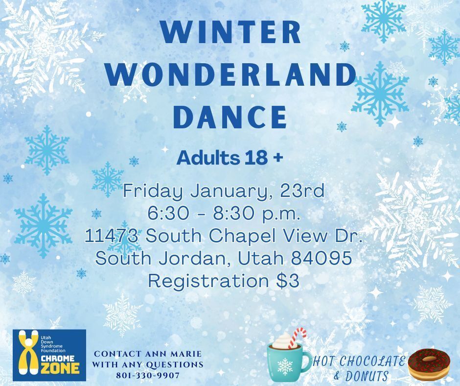 Come chase away the winter blues at our Winter Wonderland Dance. Friday, January 23rd, 6:30-8:30 PM in South Jordan.