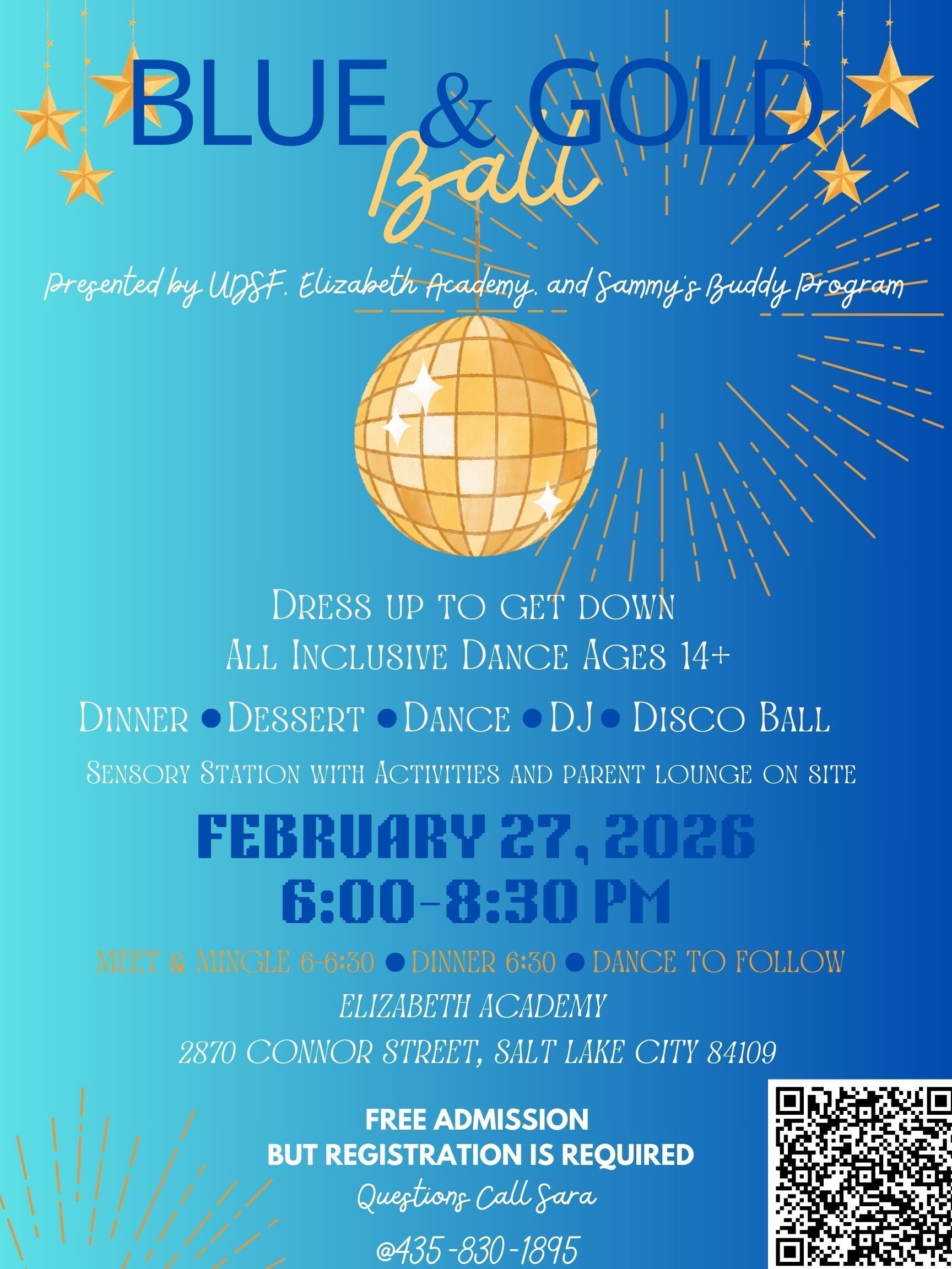 Join us at the 2026 Blue and Gold Ball. Presented by UDSF, Elizabeth Academy, and Sammy's Buddy Program.